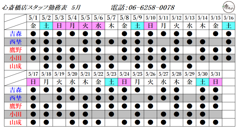 心斎橋には、ホテルもたくさんあり、ちょっと空いた時間に来店される方も多いです。