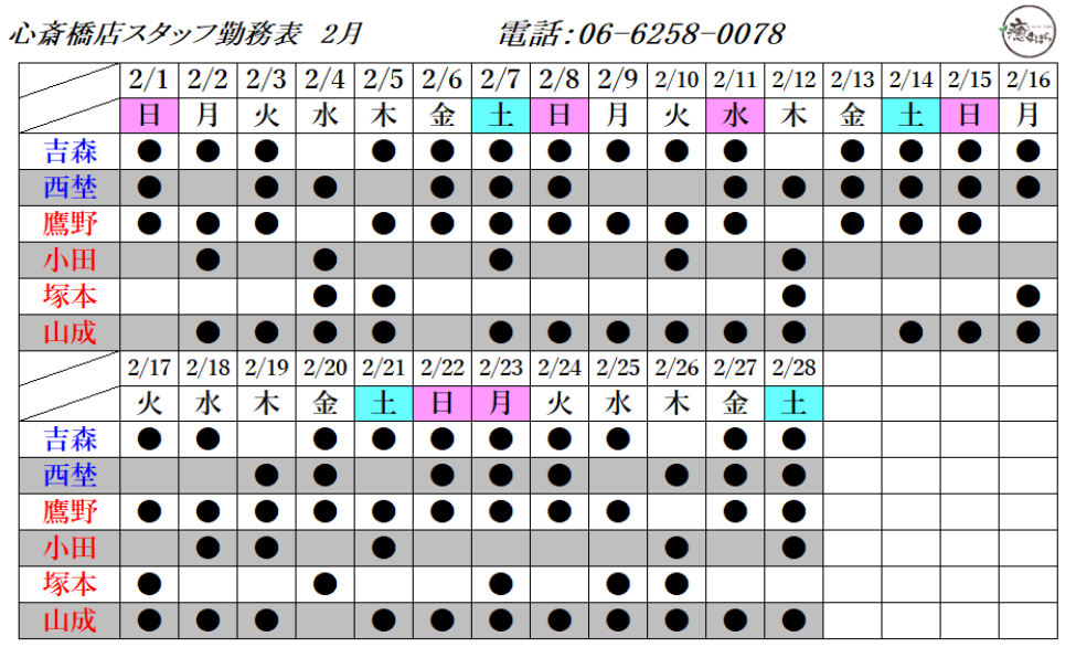 心斎橋には、ホテルもたくさんあり、ちょっと空いた時間に来店される方も多いです。