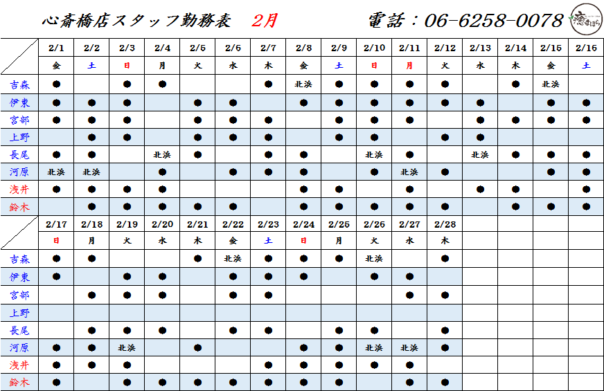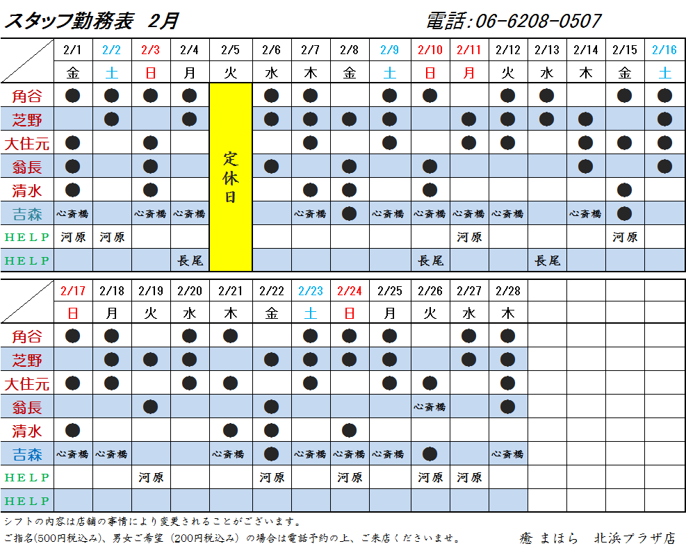 いつも癒まほら 心斎橋店 北浜店をご利用いただき、ありがとうございます。