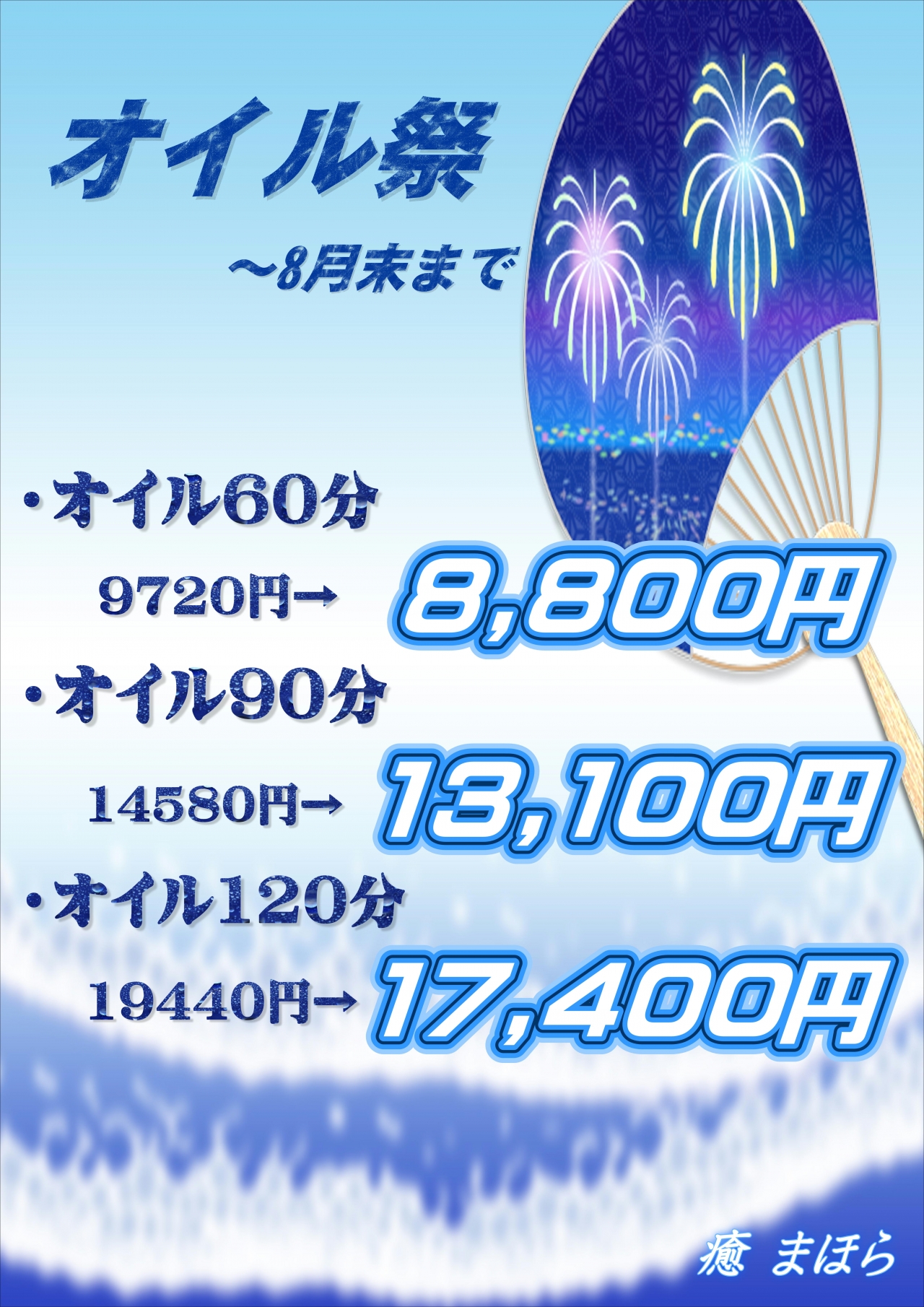オイル90分で全身をしっかりした圧で血流アップ![]()